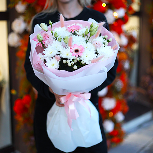 Букет "Интонации" из гербер, эустом и хризантем